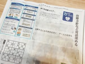 記事では、人生会議(ACP)の重要性や、普及のためのアプローチをされており、エンディングゲームもその一環として紹介いただきました(オンライン版のリンクは こちら)