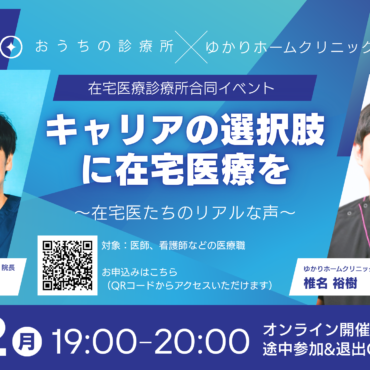 在宅医療診療所合同オンラインイベント「 キャリアの選択肢に在宅医療を~在宅医たちのリアルな声~」【おうちの診療所×ゆかりホームクリニック】 #2026.01.20 おうちの診療所は、ゆかりホームクリニック(千葉県幕張市)とともに、Zoomを利用した在宅医療診療所合同オンラインイベント「キャリアの選択肢に在宅医療を~在宅医たちのリアルな声~」を2026年2月2日に開催することとなりましたので、お知らせします。